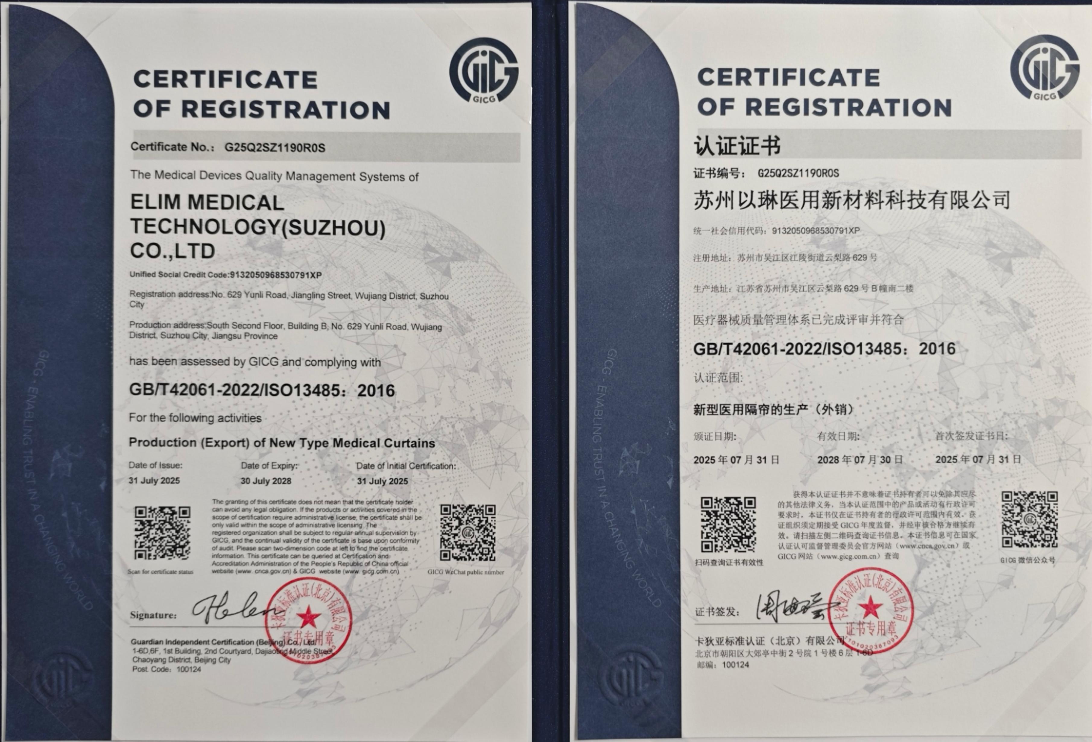 Сертификация, в частности, охватывает производство передовых медицинских штор (для экспорта), подчеркивая опыт Elm Medical в производстве высококачественных, соответствующих медицинских продуктов для мировых рынков.